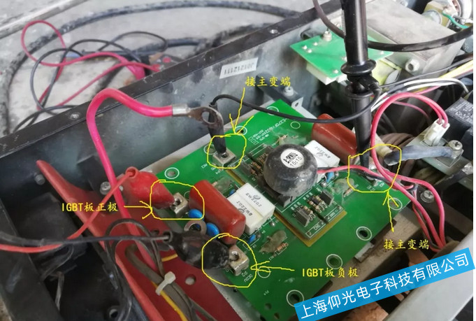 給IGBT板主電輸出端供一個30V直流電,正極接IGBT板正極,負極接IGBT板負極,示波器兩端分別接IGBT板的兩個主變接入端,焊機開機,打到手工焊,看看示波器的波形。