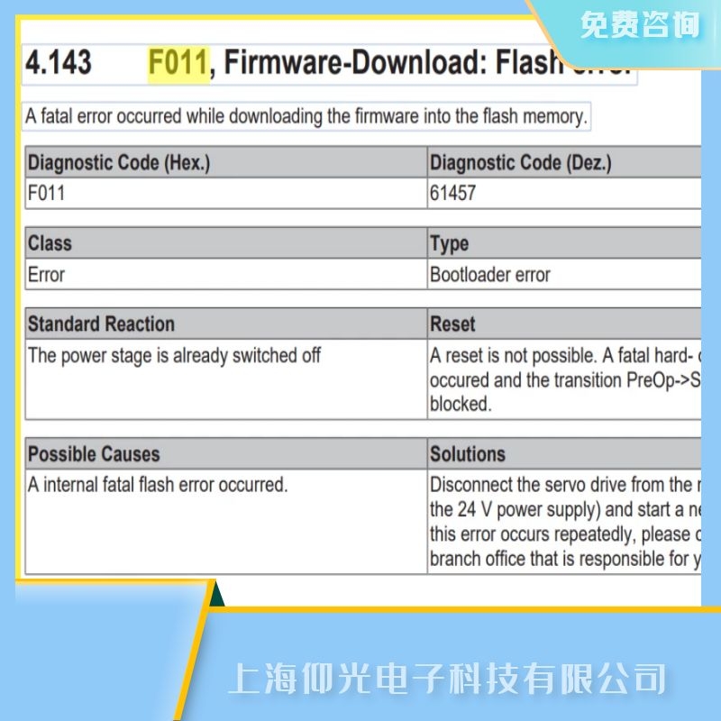 beckhoff伺服驅(qū)動(dòng)器報(bào)F011閃存錯(cuò)誤故障維修解析: